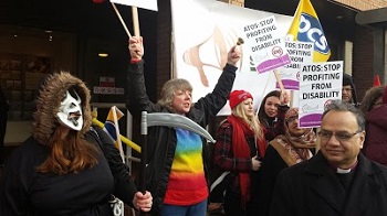 Protestors from Ealing joined a demonstration against ATOS -the firm employed by the government to undertake "workplace capability assessments".