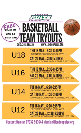 The London Pulse Basketball Club runs weekly Saturday Basketball sessions open to children ages from 6 years old to 18 years old.
