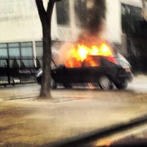 The fire service have told us that they were called at 0936 on 12th January to reports of a car alight at Dickens Yard.