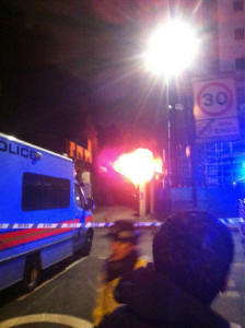 The whole of the workshop was destroyed by the blaze. Gas cylinders were reported inside the building. As some cylinders can explode when exposed to heat a hazard zone was set up and a number of people evacuated as a precaution.