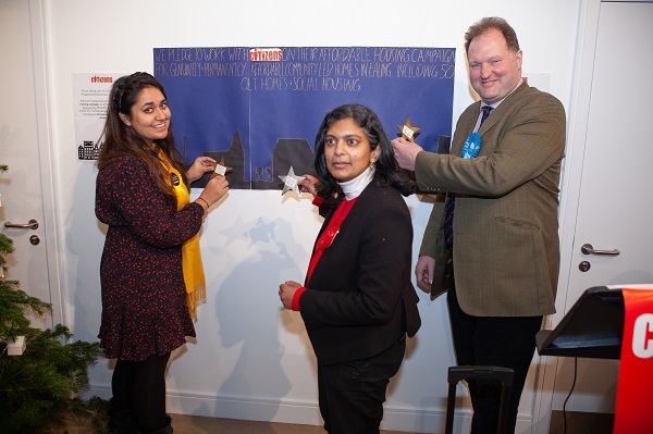 Candidates for Ealing Central and Acton, Rupa Huq, Labour, Julian Gallant, Conservatives, Sonul Badiani, Liberal Democrats are backing a campaign led by Ealing Citizens to see Community Land Trusts built in their borough.