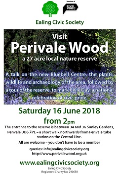If you missed the chance to see the bluebells in Perivale Wood, you will get the opportunity to see the wood ( even if all the bluebells are no longer there) courtesy of Ealing Civic Society (ECS).
