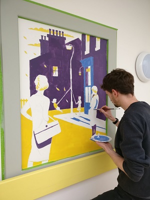 Daniel Haskett, now lives in Berlin but was born and bred in Ealing and has family here, has just completed painting three murals on the walls of the Oak Tree ward lounge as part of the Nightingale Project.