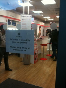 Vodafone in Ealing Broadway Shopping Centre was closed for a short time but a spokesperson from the centre said there was no trouble and shoppers weren't disrupted. Top Shop say they were open throughout the day.