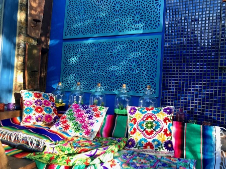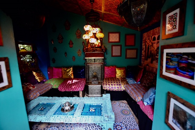 A trip to North Africa gave exactly the design inspiration they needed and rich fabrics, tiles and bright cushions were sourced online and Liz also made use of old saris which she found in a charity shop in Norwood Green.
