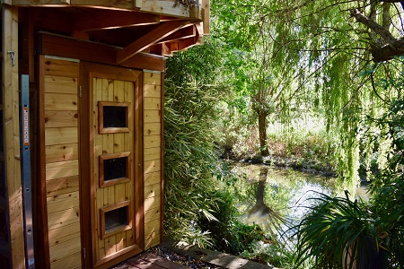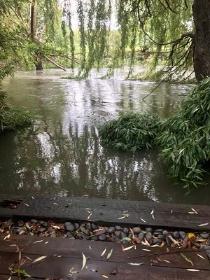 The garden backs onto the River Brent and much work went into building the river bank up to try and avoid flooding, but it can still happen twice a year, covering the seats.