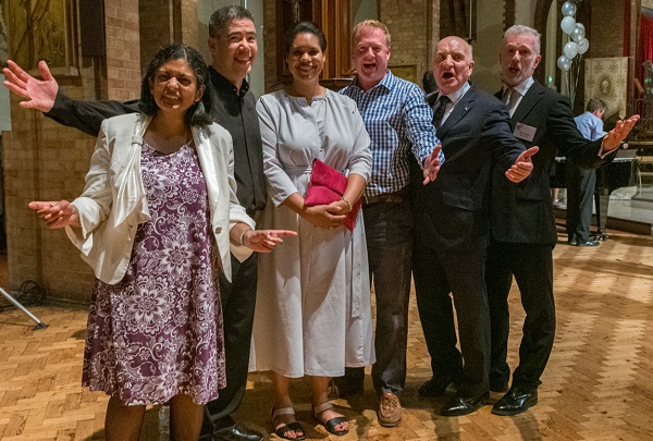 Pictured at Ealing Youth Orchestra’s 29 June 2019 60th anniversary gala concert at St Barnabas Church, Ealing are: (l-r) Dr Rupa Huq MP, Ealing Acton & Central; EYO music director Leon Gee; composer Hannah Kendall, herself former EYO member; Councillor Gregory Stafford, Leader of the Conservative Group on Ealing Council and also a former EYO player; Stephen Pound MP, Ealing North; and Christopher Brown, Chair, Ealing Youth Orchestra