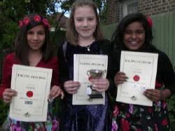 Ealing Festival Vocal Section - Elizabeth Robbings, First Prize in Vocal Solo age 13 - 15, and Amaryllis Hill and Kara de Silva, joint Second Prizewinners
