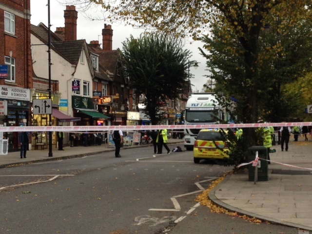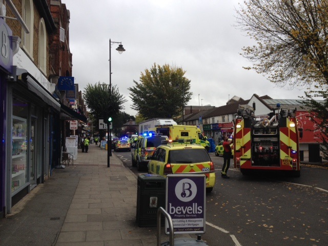 The Uxbridge road - between the Clock Tower and Church Road - has been closed off as the emergency services deal with the incident. Three fire appliances, two ambulances and a number of police cars are in attendance.