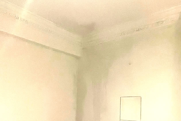 The persistent leaks had resulted in black mould growing in the bedroom and living room and large cracks are now appearing in the ceiling. The water has caused damage to some of her books and she has had to move her television set.