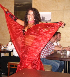 Around 9.30pm the music is turned up, a beautifully dressed lady appears and proceeds to dance around all the tables.