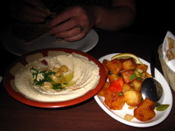 This being our first time we played safe and ordered the basic Hummous (£ 4.50) and Batata Harra (£ 4.00) - which seemed to be the Lebanese equivalent of potatas bravas.