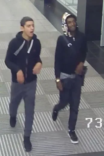 The second suspect is described as a light skinned black male, possibly of North African origin, and appeared younger in age than the other suspect. He was described as tall, had a moustache and was wearing grey tracksuit trousers.
