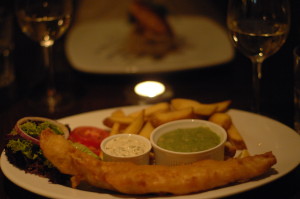 I had the squid starter with a hint of pepper - the calamari were pleasantly crisp not rubbery. Then I plumped for the haddock (pictured) - perfectly flaky in light batter, and served as a generous portion!