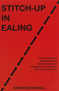 Her book " Stitch-up in Ealing" : new book on the 2001-2 campaign for an elected mayor for Ealing'' , has been self-published because commercial publishers felt the market would be too niche.