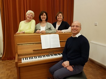 (left to right) Maria Brennan MBE (Founder, Meadow House Hospice), Sue Clark (Chairman, Ealing Choral Society), Lynne May (Voluntary Services Manager, Meadow House Hospice), Dr Jonathan Williams (Director of Music, Ealing Choral Society)