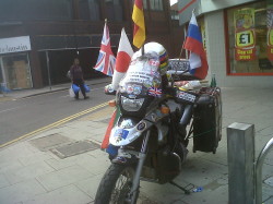 He managed to park up outside Iceland in West Ealing with no trouble yesterday though and a variety of people gathered to look at the bike and this unusual visitor.
