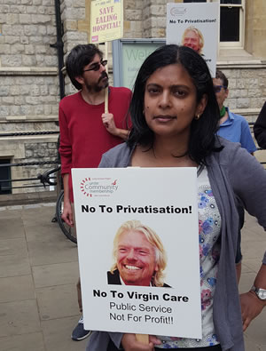 She added, “Virgin claim they are not in it for the profit, which we find unbelievable – they basically want a mainly privatised health service with an American style insurance system in which they could make massive profits. Ealing CCG should withdraw the contract and the NHS should be given the support it needs instead of wasting millions of pounds paying Management Consultants to devise projects like this.”