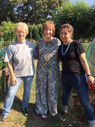 With me at the allotments on Northfields Avenue were ( l-r) Christina Fox , Maggie Touzout and Meena Badrudin, all Ealing residents and allotment owners.