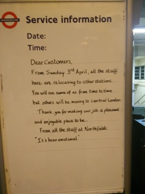 Last year Northfields ticket office was closed, and from next week, most of the workers previously based at the station will be rostered across a group of 7 different locations as required.