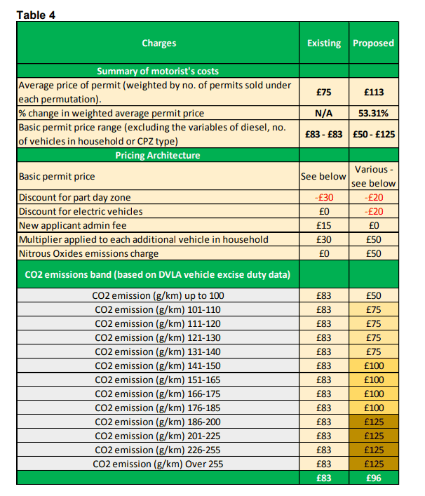 The average permit charge in the borough will increase to £163 which the report says compares to £163 in neighbouring boroughs and £107 in ‘five other boroughs’. They believe that the increase in charge will result in a 13% decrease in the number of permits issued with motorists finding 'alternative' off-street parking or getting rid of their cars altogether.