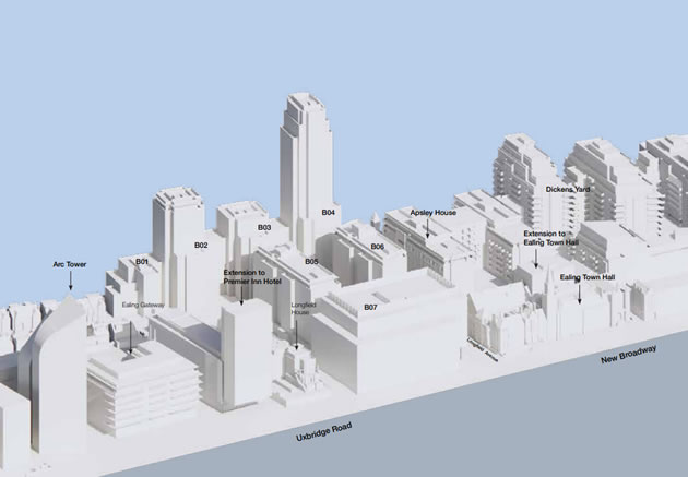 The proposal is for the demolition of the existing council premises and the redevelopment of the site to incorporate seven new buildings, one of which will be 26 storeys high, making it the tallest building in Ealing by a significant margin.