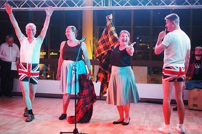 Following their public performances of Red Peppers, the Ealing team entertained their international colleagues offstage with a song and dance medley of UK entries to the Eurovision Song Contest. In keeping with the British theme of the evening, the audience was served scones with clotted cream and strawberry jam, which disappeared very quickly.
