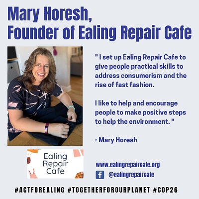 Northfields resident, Mary Horesh, set up the Ealing repair cafe in 2019 part of the Ealing Transition initiative, in a bid to cut down on waste, encourage people to value clothing, stop throwing away and learn to repair or alter instead.