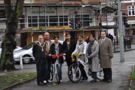 Mayor of Ealing, Councillor John Gallagher and Council Leader, Julian Bell, joined the star to present the girls with new bikes in time for Christmas.