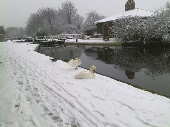 Swans in the snow -