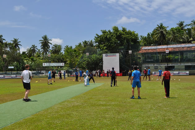 After touring the Foundation, the boys did fielding drills and played mini-matches with a group of Sri Lankan children.