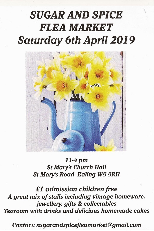 Sugar and Spice Flea Market at St Mary’s Church Hall W5 11-4pm.