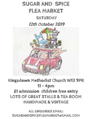Sugar and Spice Flea Market is happening this Saturday 12 October at Kingsdown Methodist Church W13 9PR.