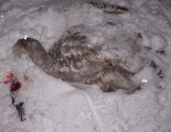 When they arrived they found the bird dead in the snow. The police alerted the Royal Society for the Protection of Animals (RSPCA) who have taken up the investigation.