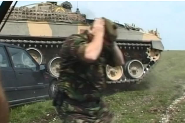 Hanwell filmmaker Steve Haskett has found some historic footage of one of his more unusual days at work, and told Ealing Today, '' When I was shooting a tank safety training video some 20 years ago, the tank I was filming ran over my vehicle!