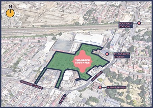 The site of the build is south of Southall Train Station, and includes some of the land in between Featherstone Road, Gladstone Road and The Green.