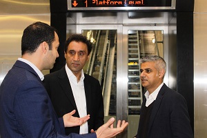 At Ealing Broadway Sadiq Khan MP Cllr Bassam Mahfouz and Onkar Sahota (London Assembly Member for Ealing & Hillingdon) and below Greenford's incline lift.