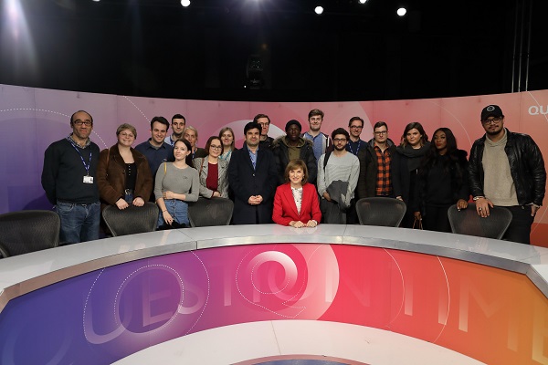 During rehearsals, students from UWL had the opportunity to find out what goes into producing the show and to meet the presenter, Fiona Bruce.