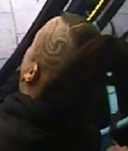 The suspect is described as black, 30-40 years old, 5ft 8in tall and wearing a beige top. She had a very distinctive hair style which can be seen in the images.