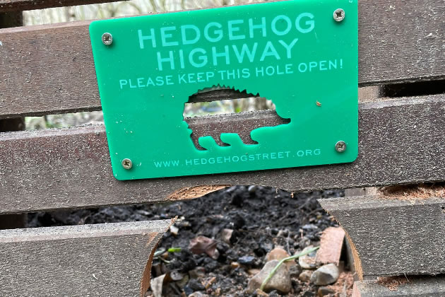 CD sized holes in fences allow hedgehogs to find food and mates