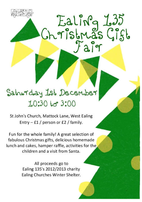 The Ealing Christmas fair will take place at St John’s Church, Mattock Lane, Ealing on Saturday 1st December from 10.30am to 3pm. Entry £1 person or £2 family.
