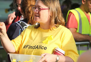 Ealing was a sea of yellow yesterday as thousands of runners donned ribbons - the symbol in the #FindAlice appeal.