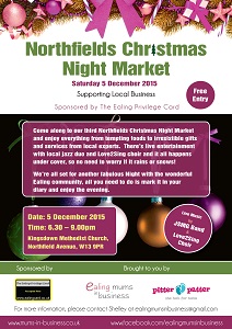 On Saturday 5th of December, over 40 traders will be at Kingsdown Methodist Church, Ealing W13 9PR for the annual e Northfields Christmas Night Market, - which coincides with Small Business Saturday.