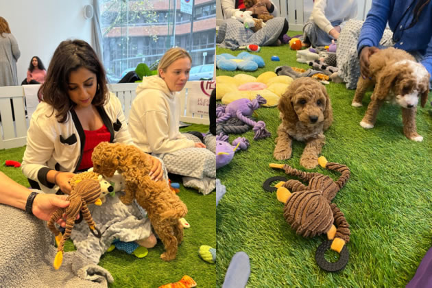 The puppy-led wellness event at Dickens Yard organised by Teach Plus as a thank you to local educators was described as a huge success with the guests expressing pure joy at being able to spend time with a litter of playful pups.