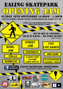 There will be a spectacular ‘Opening Jam’ at Ealing’s brand new state-of-the-art skatepark, this coming Sunday, 18th September, with activities and entertainment for all ages, starting at 10.00am.