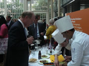 Chirag and his fellow Umi interns prepared carpaccio of salmon with a pear puree, Sacotinno di Parma ham with balsamic glaze and a courgette cream, followed by homemade tiramisu.
