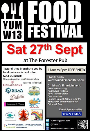 Live music will be provided by the fantastic Westbound Piccadilly, between 2-5pm and there will be some YUM W13 tote bags and balloons to give away sponsored by Hunters Estate Agents.