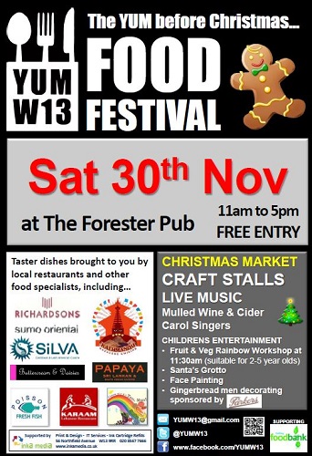 YUM W13 Food Festival will be celebrating the YUM before Christmas @ the Foresters Christmas Market this Saturday (30th November), between 11am & 5pm.
