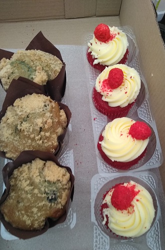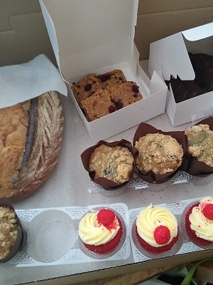 This Debaere Favourites is a huge box containing 4 each of delicious red velvet cupcakes, blueberry muffins, flapjacks and brownies as well as a Sour Dough Longue.