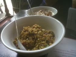 We had a Dahi Bara (3.95) which is described as Lentil dumplings in youghurt with a sweet tamarind sauce and spices, and, as if that wasn't enough, also tried the Bhel Puri (4.95) which was a combination of chana chaat, peanuts, crispy papry puffed rice and green chutney.